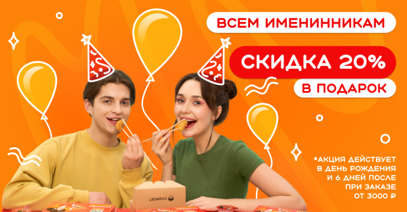 • На заказ со скидкой 20% в день рождения нельзя списывать баллы